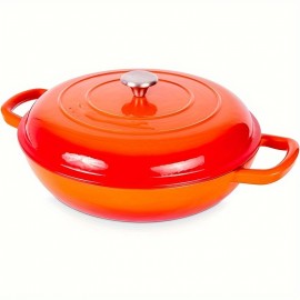 1pc 5-Quart Enamel Cast Iron Dutch Oven Pot - Heavy-Duty, Non-Stick, Heat-Resistant, Easy-Grip Silicone Handles & Mat, Perfect for Home Kitchen, Restaurant, Food Truck, Kitchen Organization, Storage, and Cooking Essentials