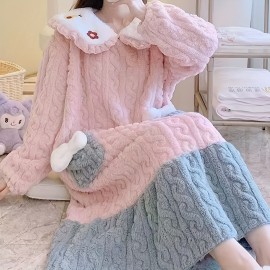 1pc Soft Coral Velvet Thickened Flannel Long Sleeve Bathrobe - Plush Long Robe for Home, Bathroom, Loungewear - Soft, Cozy, Warm, and Comfortable