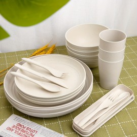32pcs Pink Wheat Straw Dinnerware Sets, Pink Dishes for 8, Plates and Bowls Sets, Reusable Plastic Plates, Microwave Dishwasher Safe Plates, Pink Plastic Dinnerware Set, Pink Plastic Plates